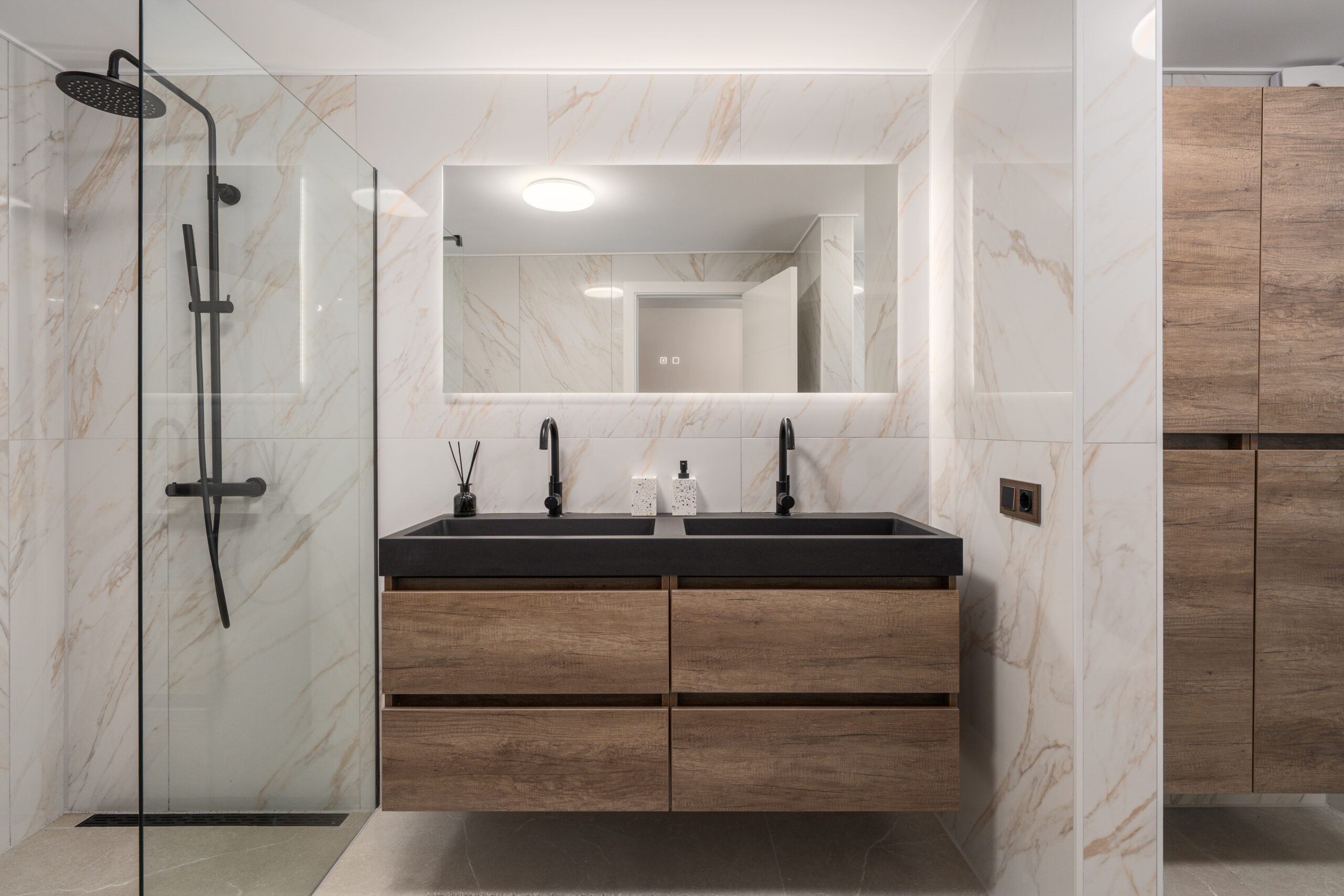Przestronne tarasy płynnie łączą się z prywatnym basenem, idealnym do wypoczynku i spotkań towarzyskich. Willa posiada także taras na dachu i ogród, a orientacja zapewnia dużo naturalnego światła i spokojne widoki. Garaż z miejscem na samochód elektryczny dodaje nowoczesnej wygody.
