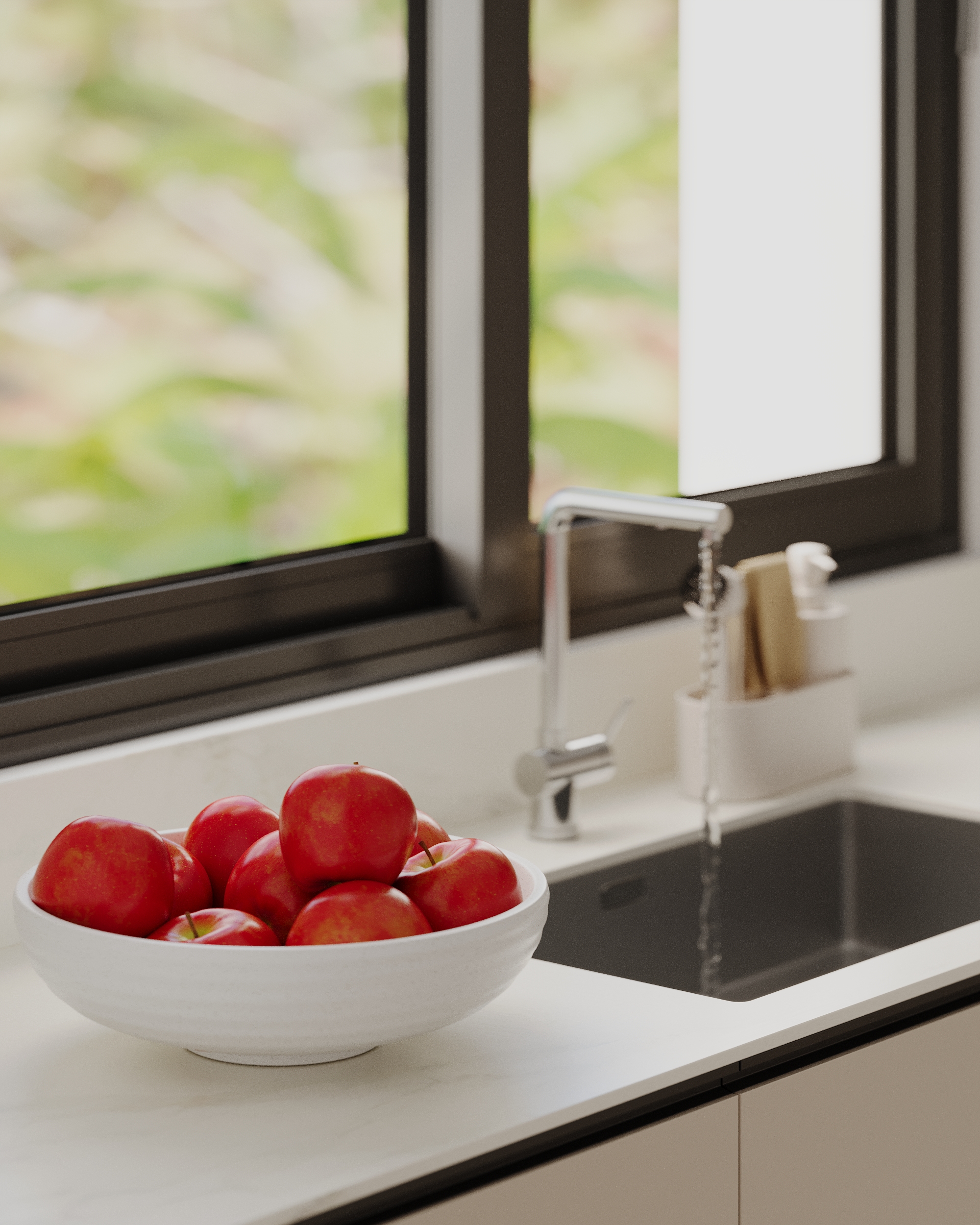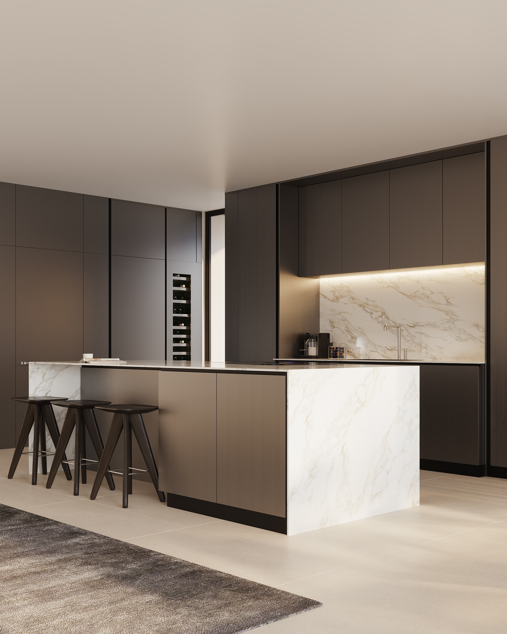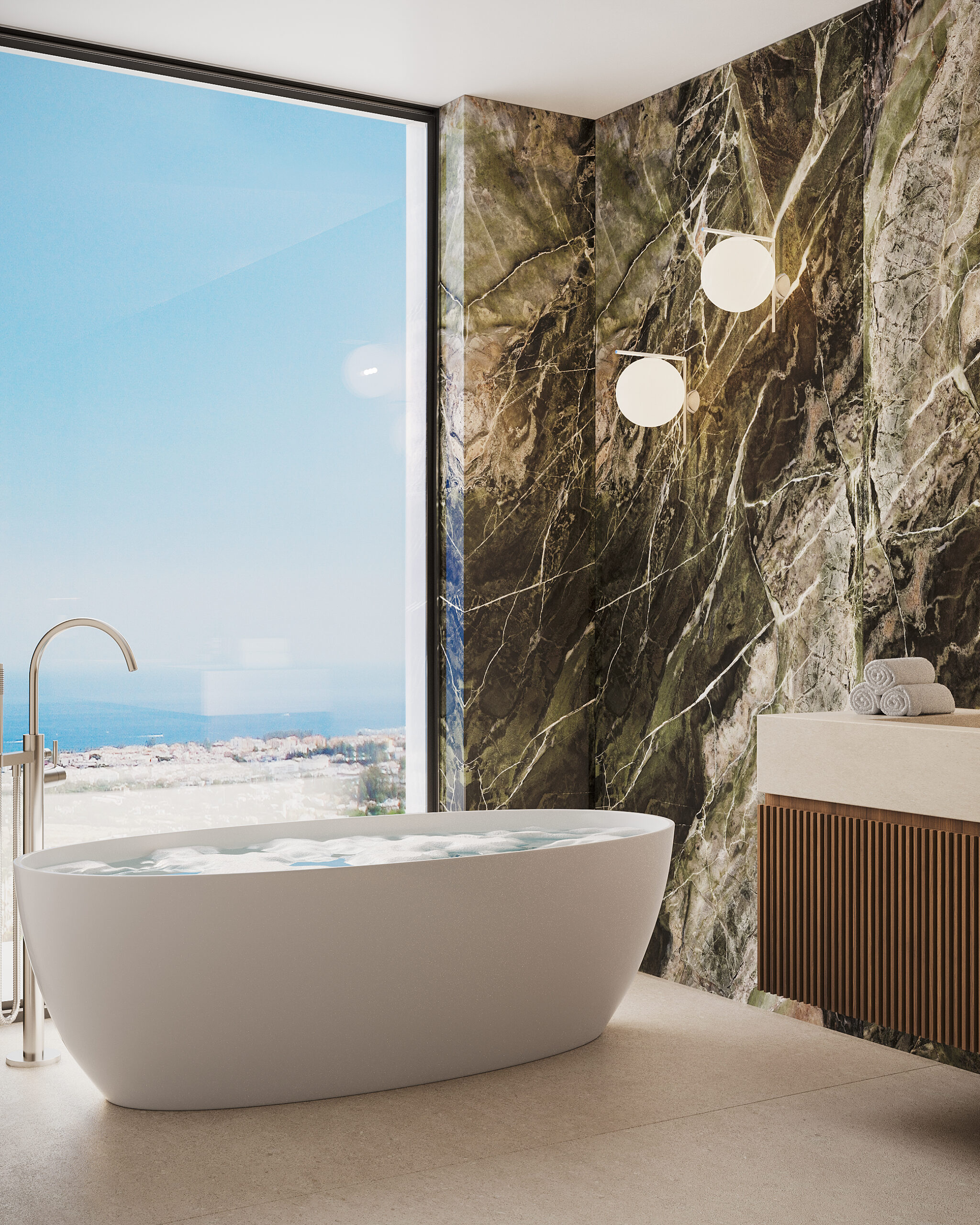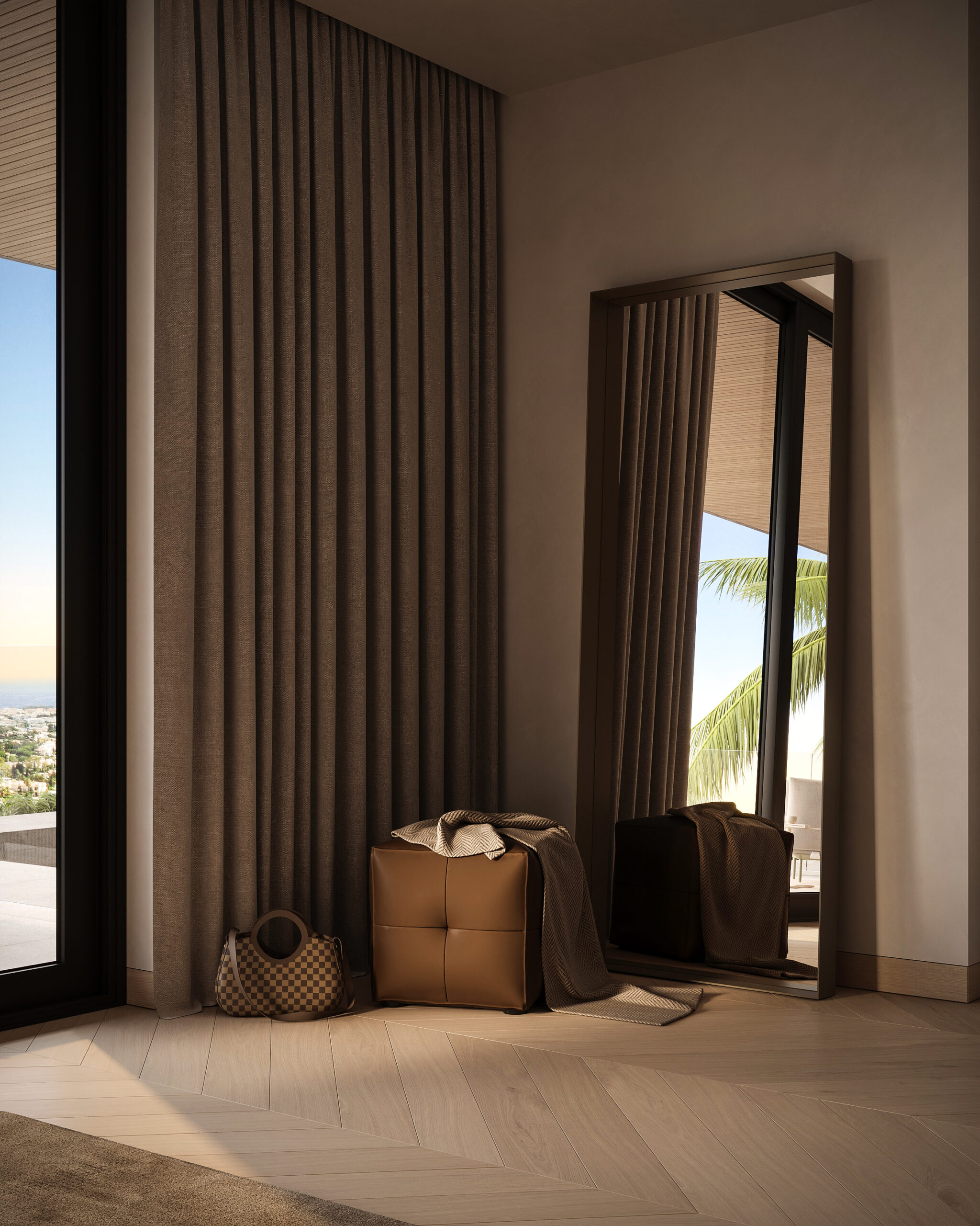 Przestronne tarasy pozwalają cieszyć się śródziemnomorskim stylem życia przez cały rok, oferując idealne miejsce na poranną kawę, relaks w słońcu czy wieczorny odpoczynek przy delikatnej bryzie. Jasne, otwarte salony z panoramicznymi oknami od podłogi po sufit wprowadzają naturalne światło i poczucie przestrzeni, a eleganckie sypialnie stają się prywatnym azylem z widokiem na horyzont. Kuchnie łączą funkcjonalność ze stylem, wyposażone w najwyższej klasy sprzęt, idealne zarówno do codziennych posiłków, jak i eleganckiego przyjmowania gości.