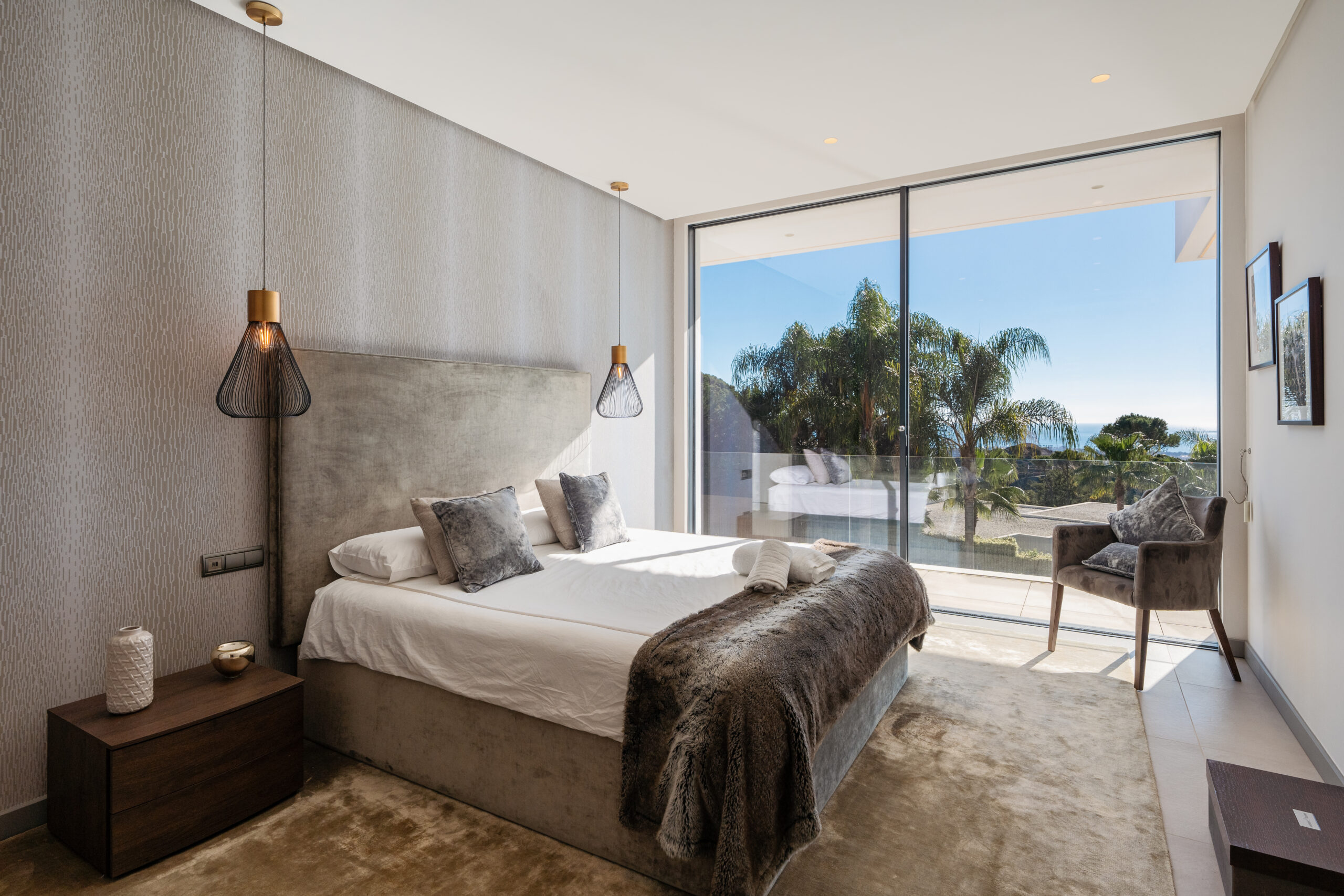 Willa rozciąga się na dwóch kondygnacjach, oferując 5 sypialni z łazienkami en-suite, dodatkową toaletę oraz apartament gościnny w standardzie głównej części domu. Eleganckie wnętrza są w pełni umeblowane, a wysokiej klasy wyposażenie obejmuje urządzenia Gaggenau, elektryczne rolety, system alarmowy i automatyczne nawadnianie ogrodu.