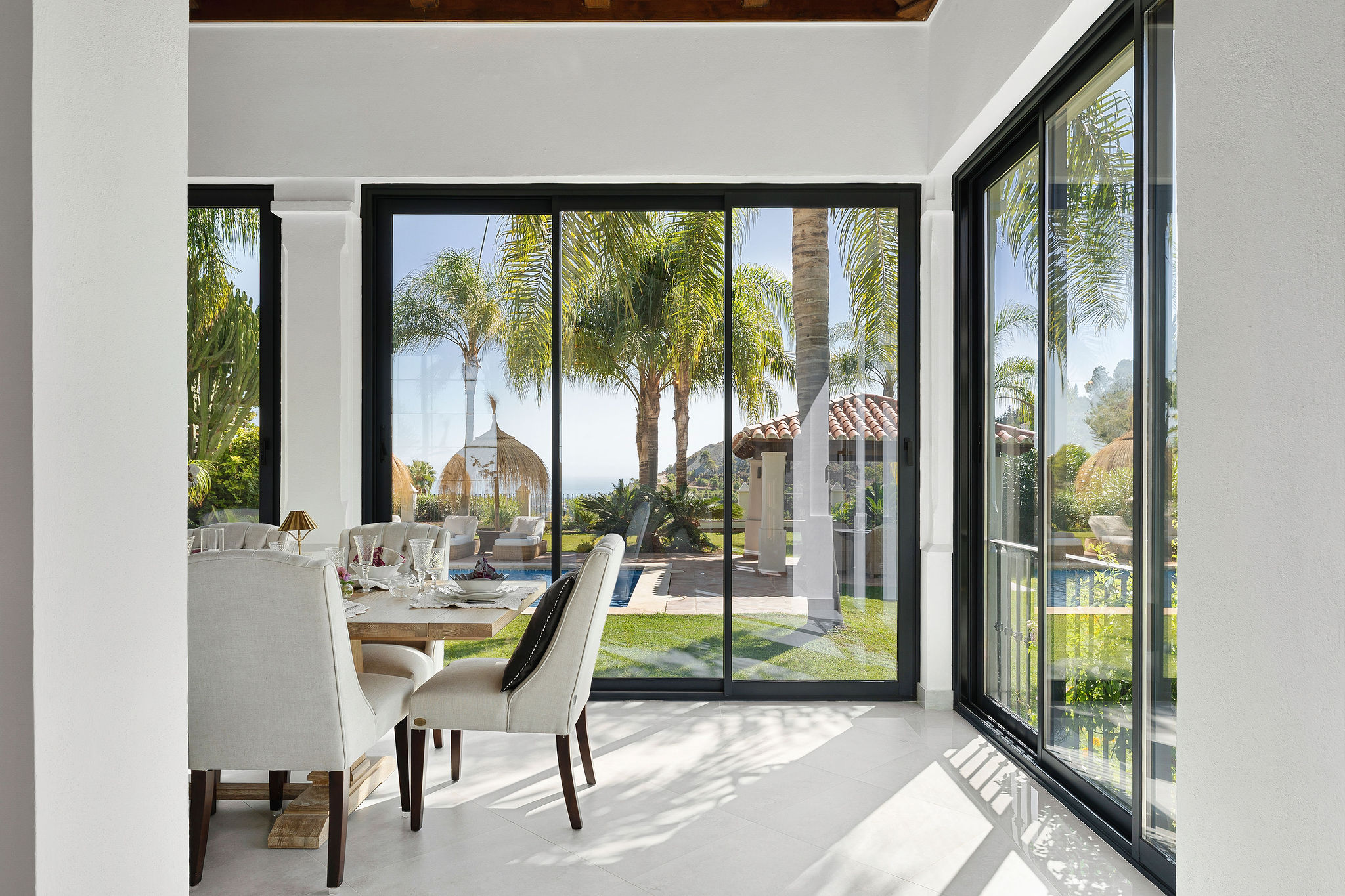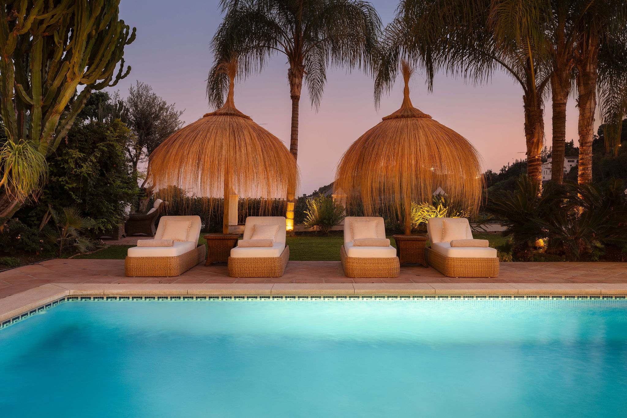 Otoczona ponad pięćdziesięcioma majestatycznymi palmami i zadbanymi śródziemnomorskimi ogrodami z drzewami pomarańczowymi, cytrynowymi i jacarandami, rezydencja oferuje malownicze widoki na Morze Śródziemne i góry. Położenie południowo-południowo-zachodnie gwarantuje pełne nasłonecznienie przez cały dzień oraz spektakularne zachody słońca, które można podziwiać zarówno z wnętrza, jak i przestronnych tarasów.