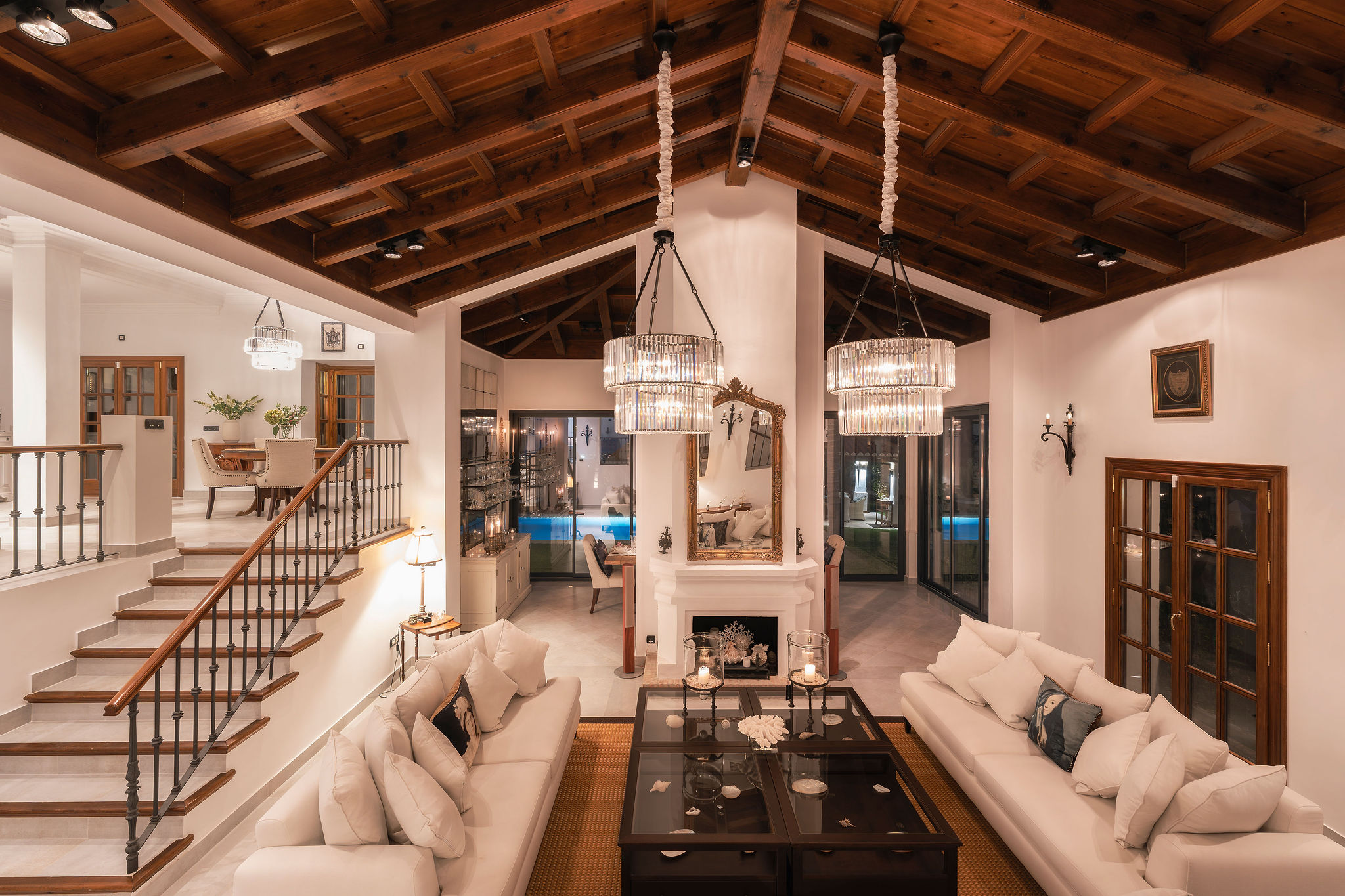 Wnętrza willi łączą tradycyjny charakter architektury Madroñal z nowoczesnymi detalami: wysokie sufity, eleganckie łuki, ciepłe materiały i przestronne, otwarte strefy dzienne tworzą ponadczasową, przytulną atmosferę. Na parterze znajdują się reprezentacyjne salony i jadalnia, podczas gdy prywatne sypialnie i master suite z garderobą zapewniają komfortowy wypoczynek. Dodatkowo dedykowany salon telewizyjny, kino domowe i inteligentny system audio podnoszą jakość codziennego życia.
