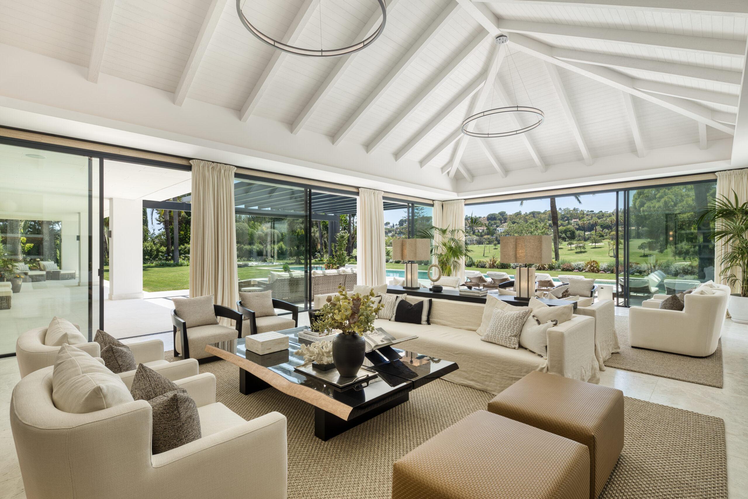 Położona w samym sercu Nueva Andalucíi, Villa Solstice to imponująca, frontowa willa golfowa, której wyjątkowa lokalizacja przy prestiżowym, prywatnym klubie Las Brisas Golf Club gwarantuje spektakularne zachody słońca – to właśnie one zainspirowały nazwę tej rezydencji. Starannie zaprojektowany ogród z bujną roślinnością tworzy malownicze tło dla prywatnego basenu, który pozwala cieszyć się śródziemnomorskim klimatem przez cały rok. W strefie chill-out, tuż przy basenie, znajduje się eleganckie, zagłębione miejsce do relaksu, a pergola z barem i jadalnią na świeżym powietrzu sprzyja kameralnym spotkaniom i przyjęciom w ogrodzie.
